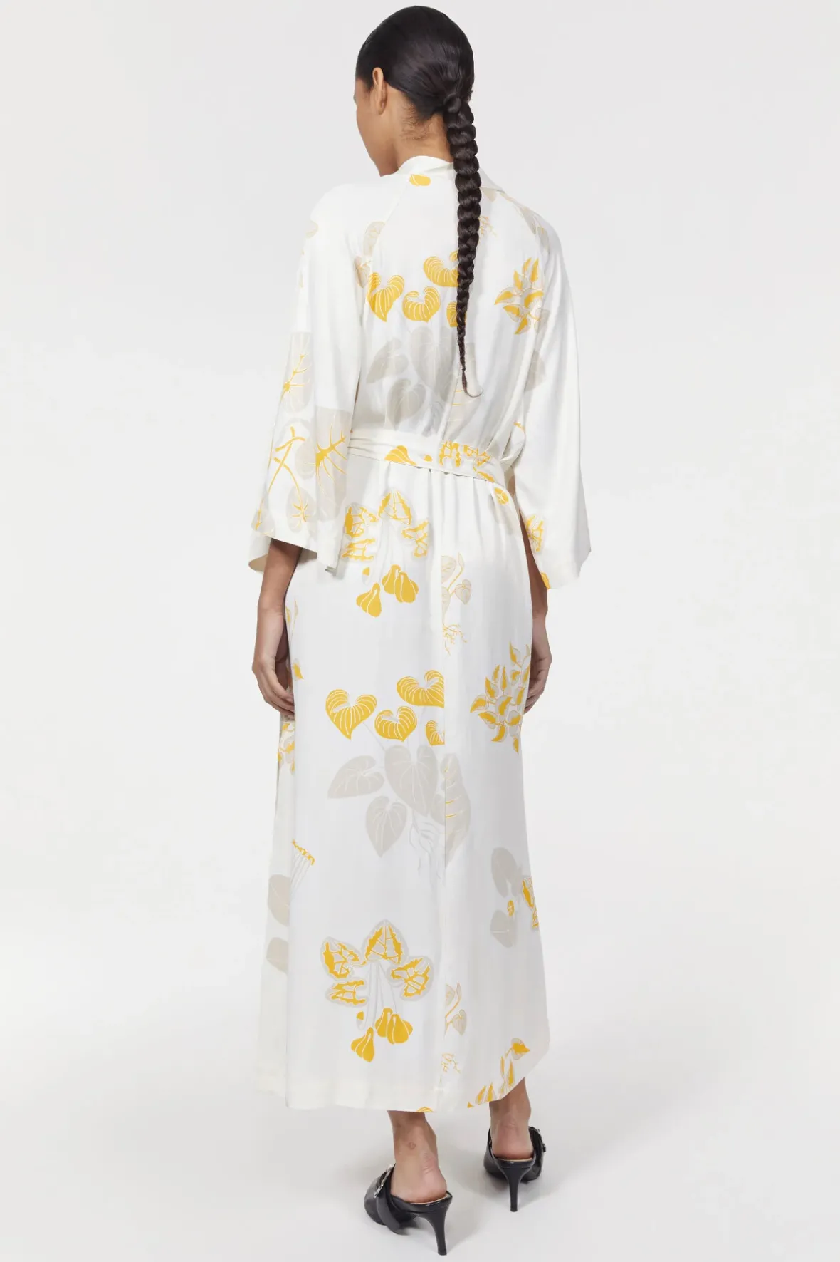 A Signature Rodebjer Design, The Mabelin Dress Is Illustrated With The Heartleaf Motif. Crafted From An Fcs-Certified Viscose Blend That Ensures Drape And Movement, This Piece Is Shaped With Wide Cape Sleeves, Side Slits And A Shawl Collar. A Wrap Closure Allows You To Adjust Its Silhouette To Your Choosing.