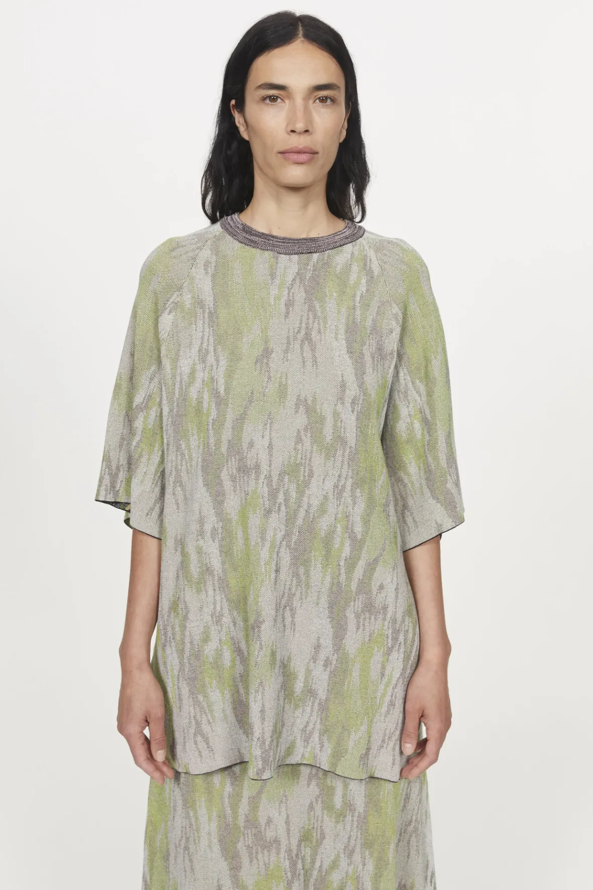 The Jacquard Minju Top Is Knit From Fsc-Certified Viscose In A Palette Of Soft Pastels. Shaped To An Oversized Fit, It Has Dropped Shoulders That Flare Below The Elbows. Pair With The Matching Flora Skirt.